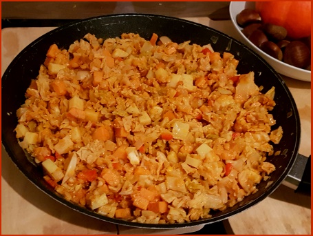 ... look, I had no idea whether that would work or not, tastewise. I simply went with feeling into the spices, and the colours, and added what I felt fit. It is certainly an interesting combination, but actually: not a bad one, at all!